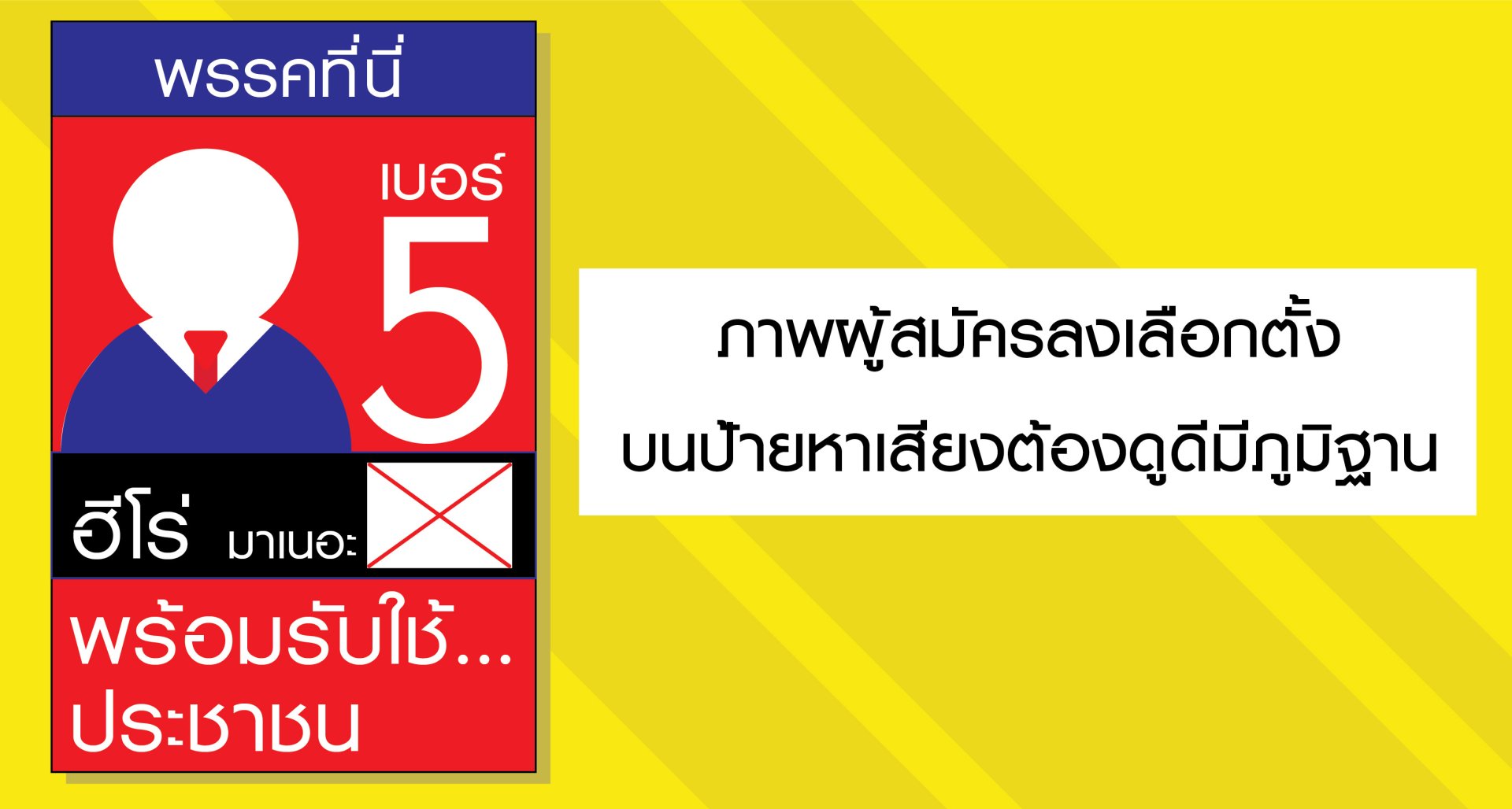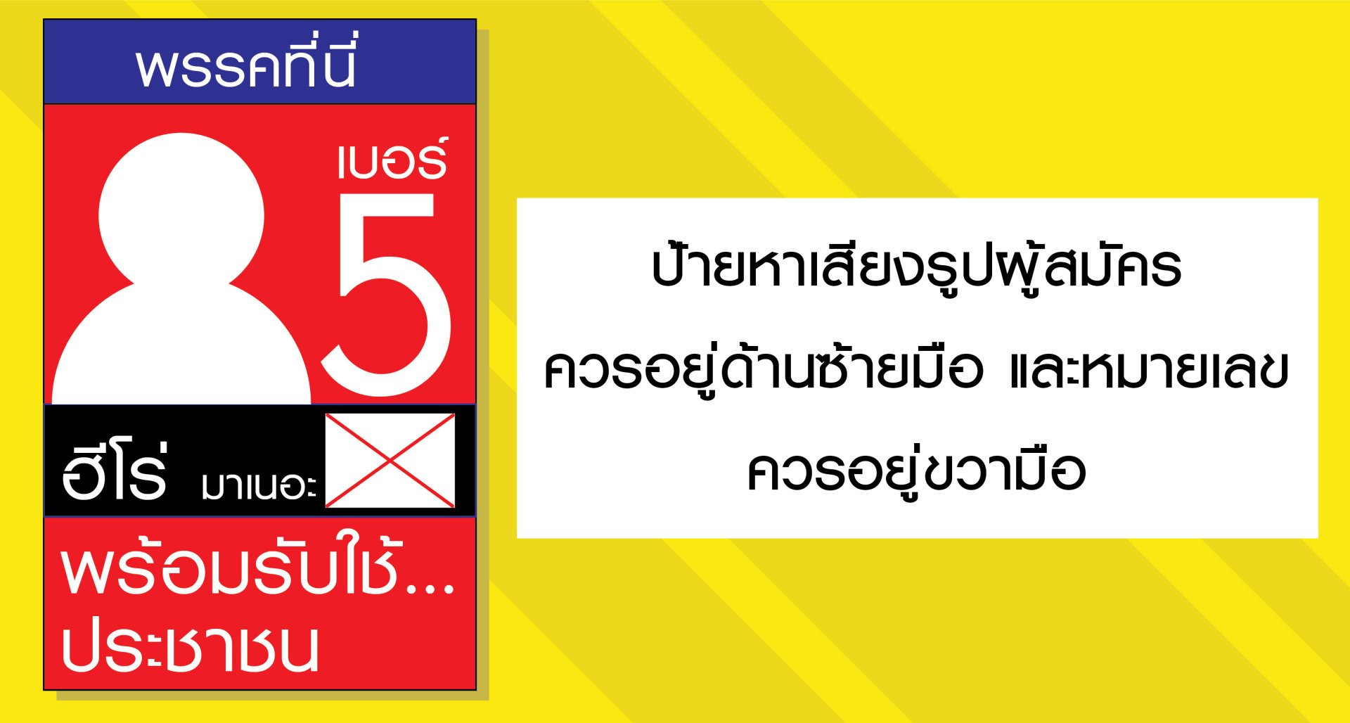 ป้ายหาเสียงรูปผู้สมัครควรอยู่ด้านซ้ายมือ และหมายเลขควรอยู่ขวามือ