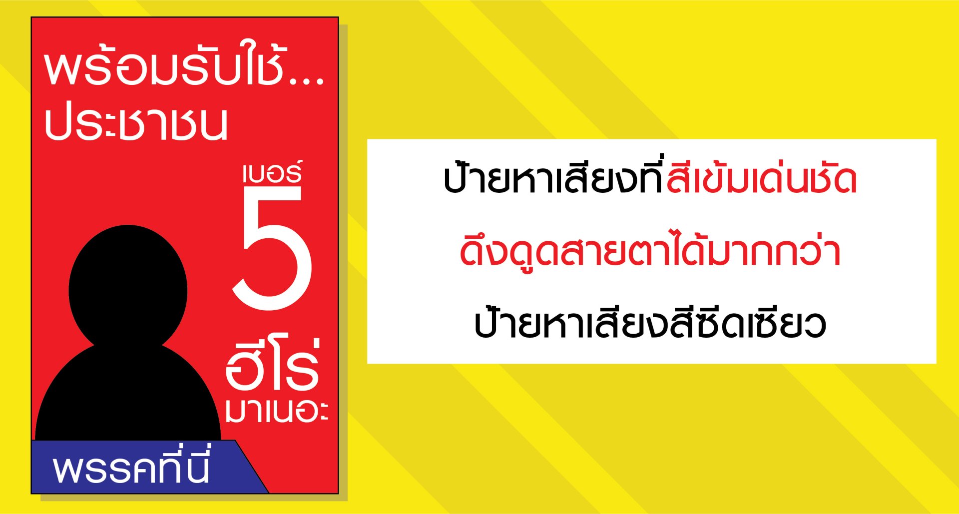 ป้ายหาเสียงสีเข้มเด่นชัดดึงดูดสายตาได้มากกว่าป้ายหาเสียงสีซีดเซียว