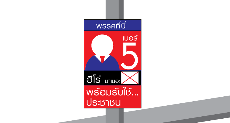 จุดติดตั้งที่เหมาะสมกับป้ายหาเสียงไวนิล : เสาปูน เสาไฟฟ้า พื้นที่กำแพง ห้อยหน้าร้านค้า
