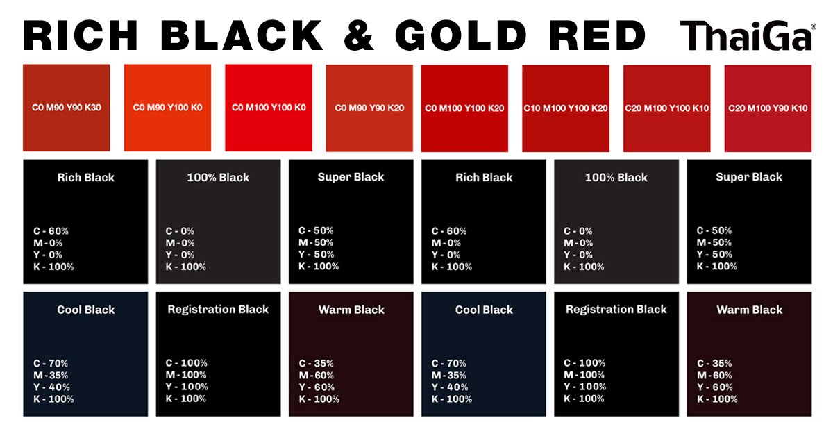 1.สีดำสนิทสำหรับพื้นที่ขนาดเล็ก เช่น ตัวอักษร เส้นขอบบาง ๆ และมีขนาดเล็กมาก ให้ตั้งค่าสีดำ โดย CMY เป็น 0% และ K เป็น 100%