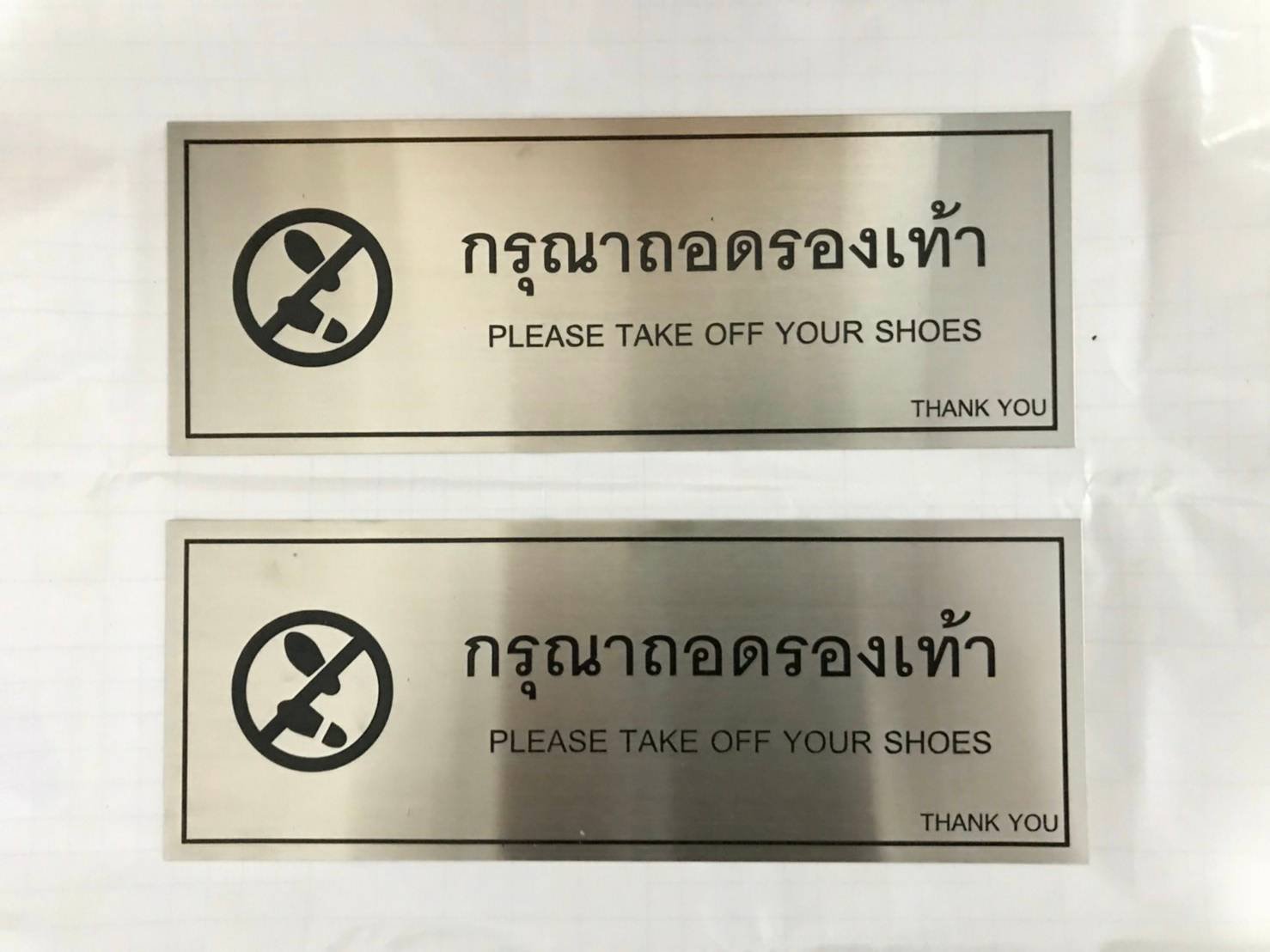 สำหรับความแตกต่างของป้ายกัดกรดชนิดแสตนเลสแฮร์ไลน์ กับป้ายกัดกรดแบบเงานั้น จะมีความแตกต่างอยู่ที่การดูแลรักษาเพียงเท่านั้น เพราะป้ายแสตนเลสเงากัดกรดนั้น จะค่อนข้างดูแลรักษายากกว่าป้ายแสตนเลสแฮร์ไลน์ เนื่องจากต้องรักษาความเงางามของป้ายไม่ให้เกิดรอยขีดข่วนบนป้าย แต่สำหรับเรื่องความสวยงามก็ขึ้นอยู่กับความชอบของแต่ละบุคคล หากชอบความโดดเด่นเงางาม ก็ขอแนะนำป้ายแสตนเลสเงากัดกรดเลยครับ และไม่ต้องกังวลเรื่องความคงทน ป้ายทั้งสองชนิดไม่ว่าจะเป็นแสตนเลสแฮร์ไลน์ หรือแสตนเลสเงากัดกรด มีความคงทนไม่ต่างกัน